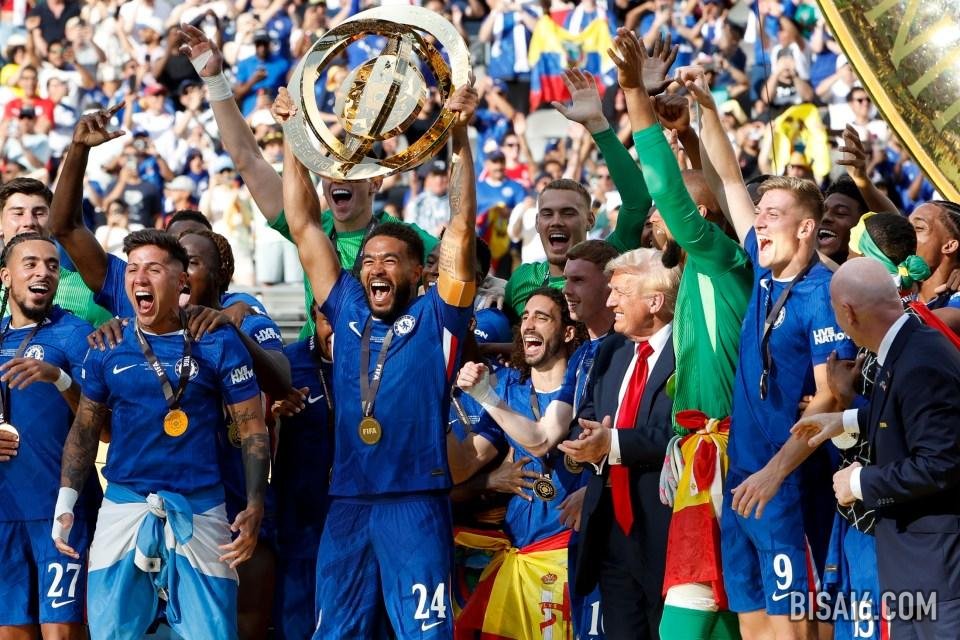 美国总统站在里斯·詹姆斯(Reece James)举起奖杯时站在旁边,使球员感到困惑。