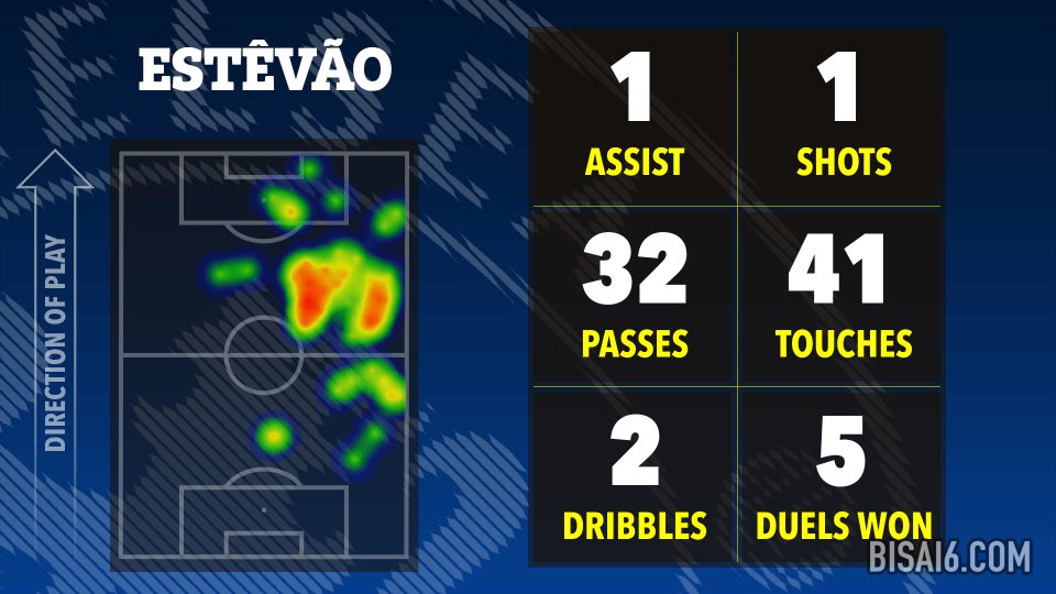 但是,值得等待的是,Estevao点燃了伦敦体育场,并以出色的表现宣布他进入英超联赛。