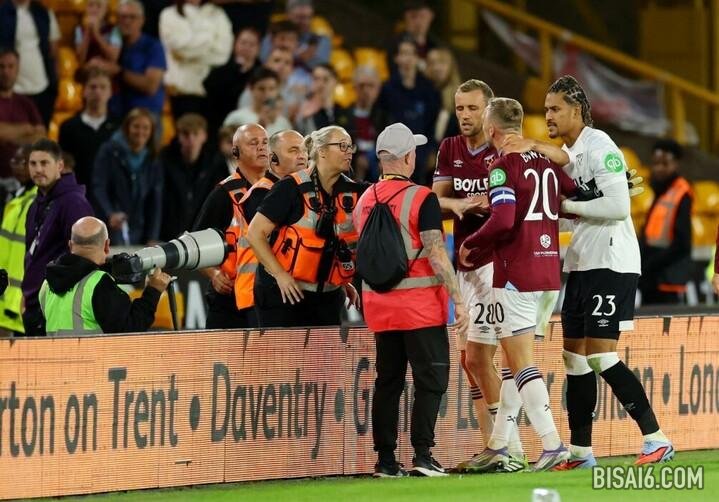 贾罗德·鲍恩(Jarrod Bowen)在与狼队的卡拉巴杯冲突之后与球迷们一起吵架之后,必须被他的西汉姆队队友阻止。