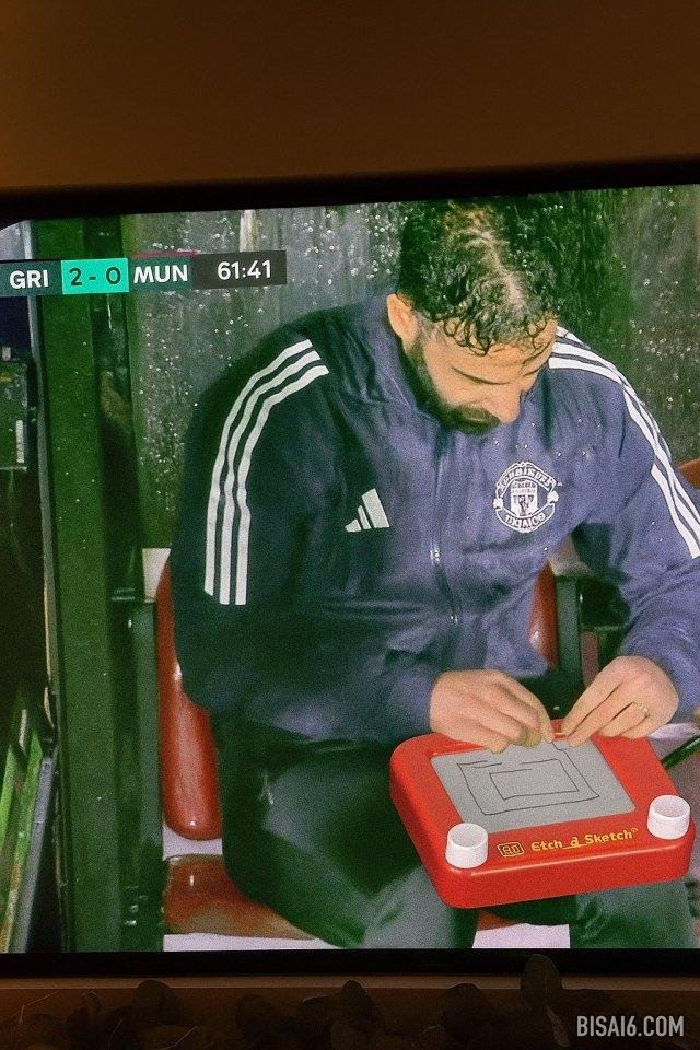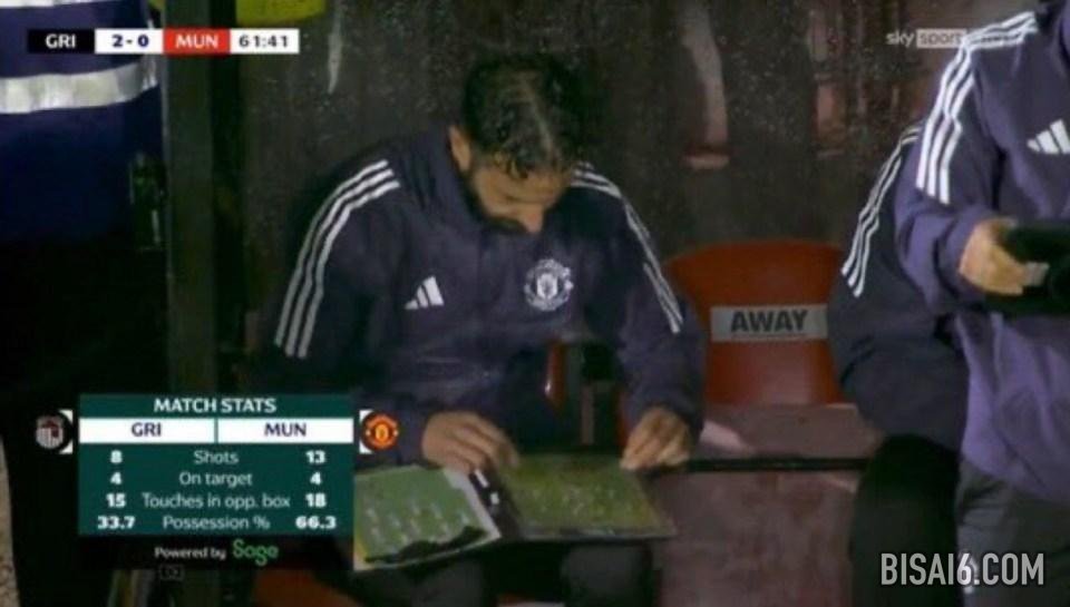 一个Amorim的剪辑提供了完美的弹药,因为电视摄像机抓住了雨水浸透的曼联老板在他的潮湿战术委员会中拼命寻找答案,而United在第62分钟以2-0落后。