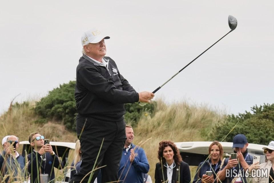 唐纳德·特朗普(Donald Trump)在新特朗普北海连接高尔夫球场开业时首次击中