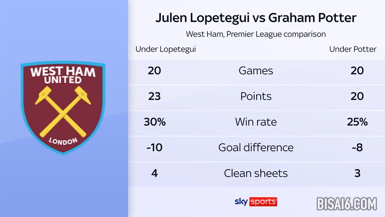 现在,波特在同一比赛中比他的前任朱伦·洛佩特格(Julen Lopetegui)赢得了比他的前任朱伦·洛佩格(Julen Lopetegui)的冠军。在英超联赛时代,只有AVRAM Grant在西汉姆经理中平均每场得分更少。
