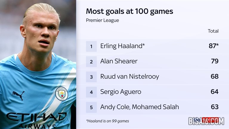 他从99场比赛中获得87个进球的统计数字使他在同一时刻的英超历史上的任何其他球员都舒适地领先,并强调了为什么这么多方面试图在今年夏天的转会窗口中添加自己的版本。