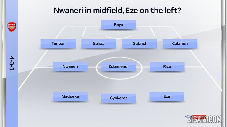 Arteta可以选择在那一侧安装Eze,如果不可用Odegaard,请在中场使用Nwaneri。