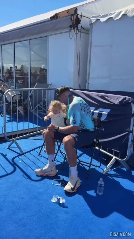 他在一场闪闪发光的地中海战斗以完成游泳,然后在拥抱自行车并以极高的高温奔跑。