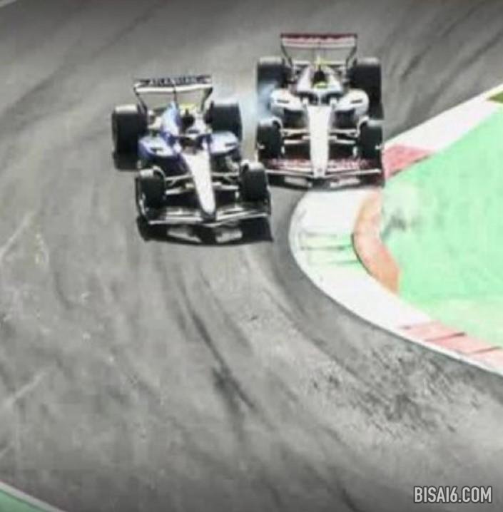 威廉姆斯司机塞恩兹(Sainz)在对手的竞争对手将汽车放在德拉·罗吉亚·舒恩(Dela Roggia Chicane)的内部(四回合)时,争取对阵哈斯新秀奥利·贝尔曼(Haas Rookie Ollie Bearman)的位置。