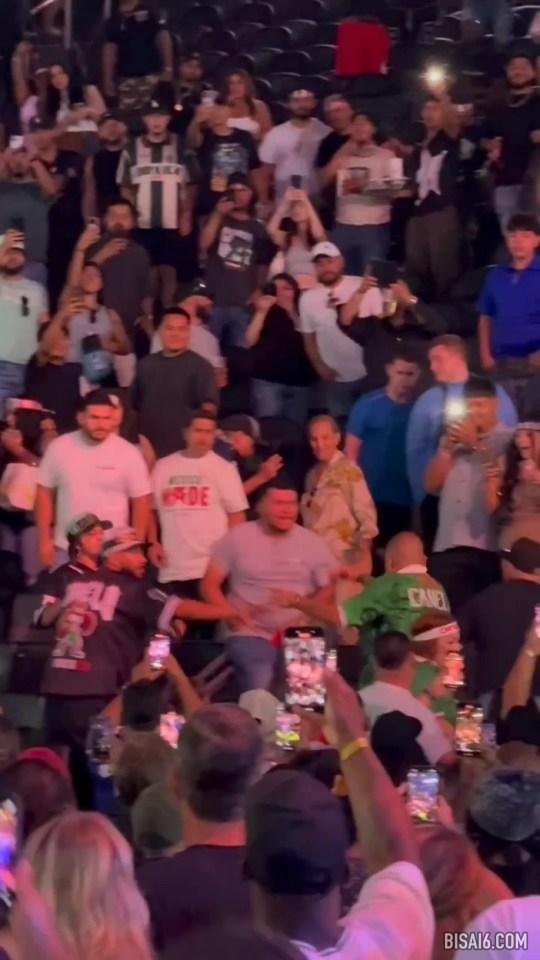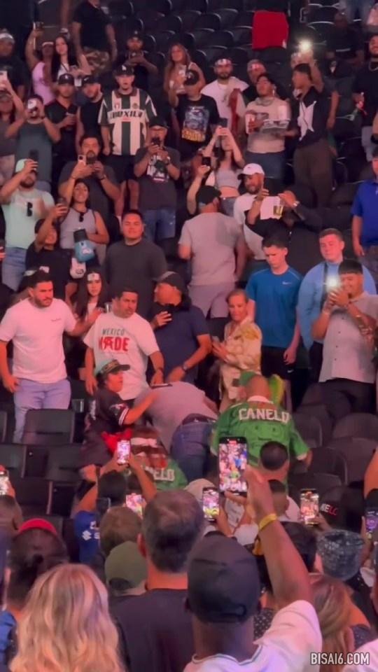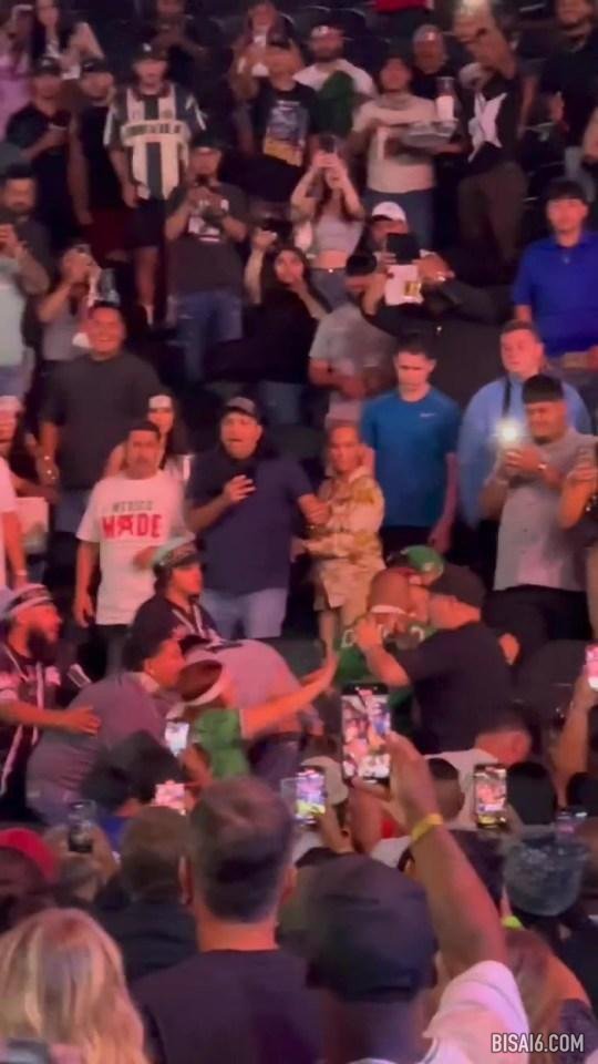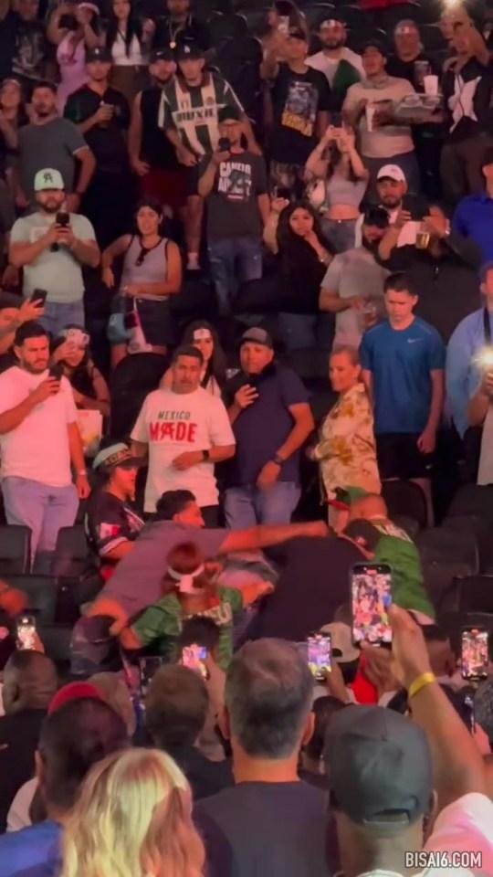 Saul’Canelo’Alvarez和Terence Crawford的称重被一场猛烈的斗殴所掩盖,在高度期待的战斗之前的人群中。