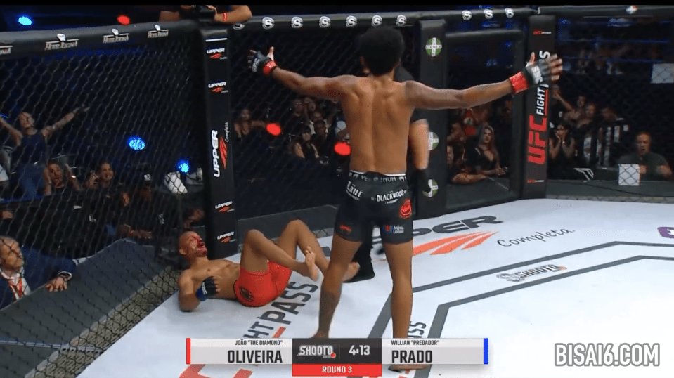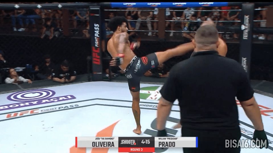 普拉多(Prado)的后背毫无防备,奥利维拉(Oliveira)拒绝进行任何后续罢工,因为他的对手全都是ko’d。