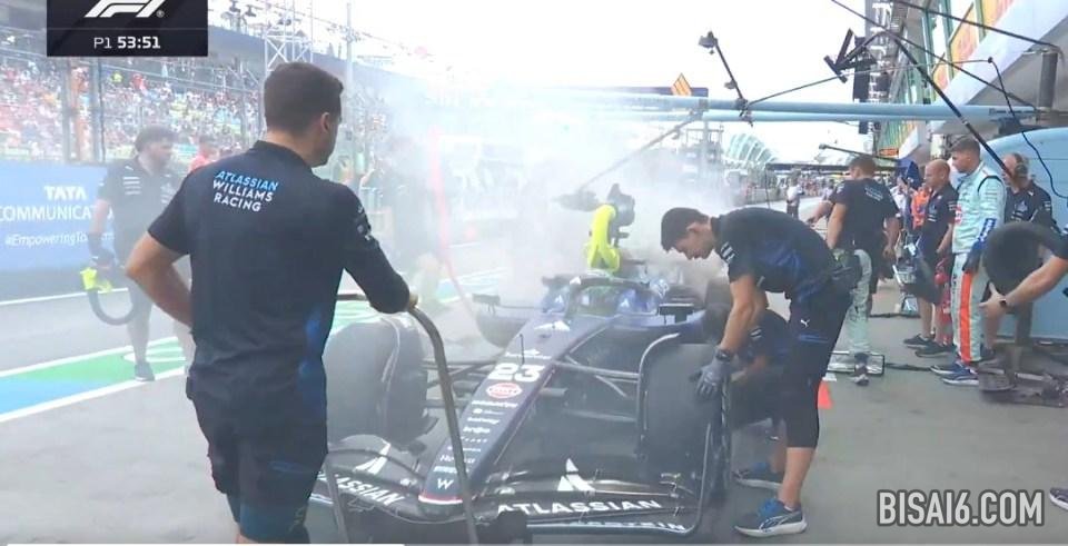 当Albon仍然坐在他的驾驶舱里时,Team Mechanics急于寻找灭火器,以扑灭29岁男子的刹车。