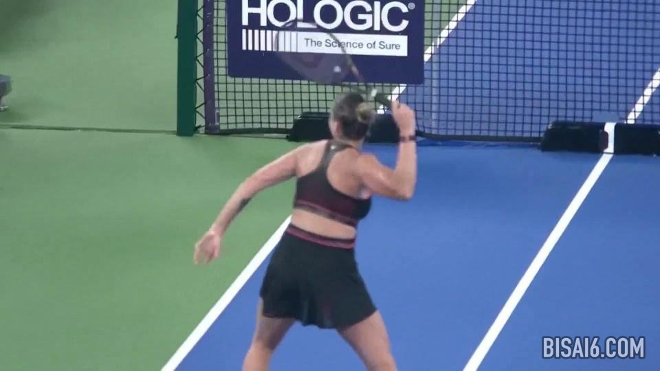 阿丽娜·萨巴伦卡(ARYNA Sabalenka)愤怒地扔出球拍,险些避开了一名球童。