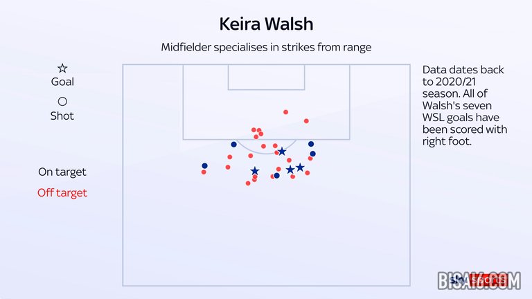 当话题是切尔西时,几乎不可能发现弱点。现实情况是,他们的球队里挤满了专长于专业的人。凯拉·沃尔什的天赋是禁区外的进球。