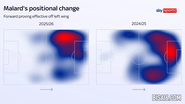 马拉德可能会穿9号球衣,但她正在证明自己在左路的效率,能够从外线到内线进行突破。她在4-1战胜埃弗顿的比赛中扳平比分,体现了她长期以来所表现出的坚持。她巧妙的动作代表了方法的调整。