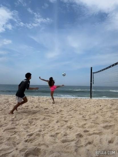 埃德尔·米利陶的妻子泰娜在被拍到在海滩踢足球后,以其令人印象深刻的触球能力和空中能力震惊了球迷。