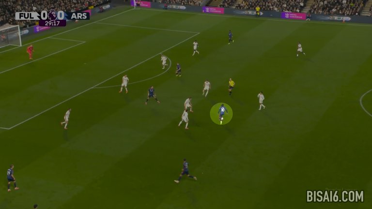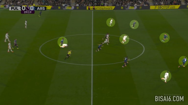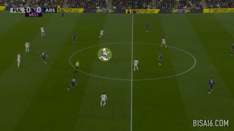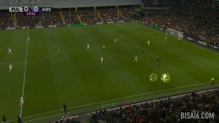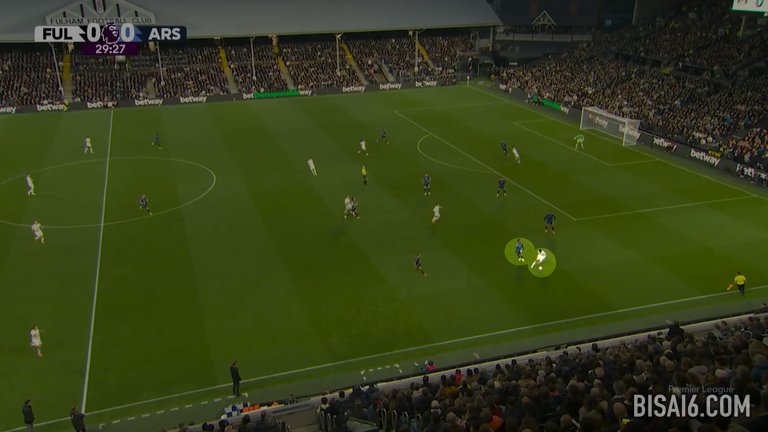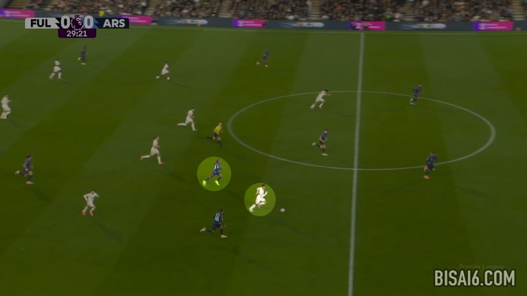 20分钟后,富勒姆在类似的情况下再次出现失误,埃兹再次选择了安全传球,这次是给马丁·祖比门迪,但他的路线被金挡住,金将球从他身上抢断,深入阿森纳半场。