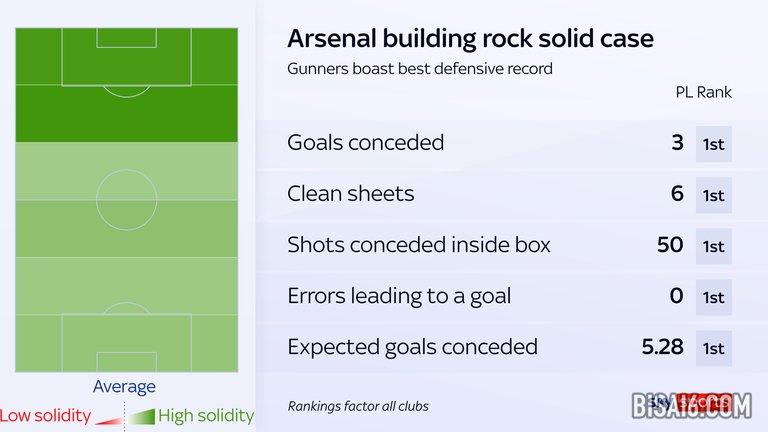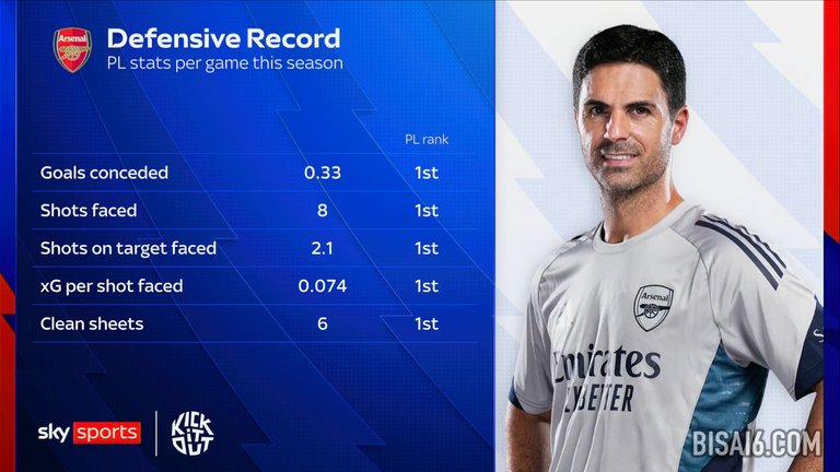 阿尔特塔的球队无疑正在以防守为基础。坚固性一直是西班牙人麾下的主打——阿森纳本赛季只被攻破3次,在9场比赛中6场不失球。