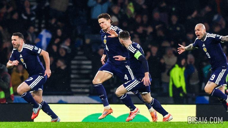麦克托米奈令人惊叹的倒勾踢后,苏格兰球迷在球迷公园疯狂