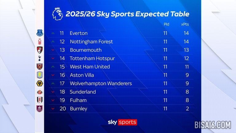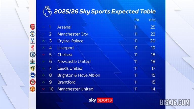 本周的《字里行间》揭示了根据天空体育xG 公式,英超联赛的积分榜应该是什么样子。