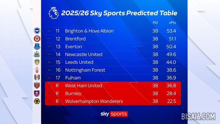 这意味着利兹联和桑德兰预计将生存下来,而伯恩利是唯一预计直接降级的晋级球队。