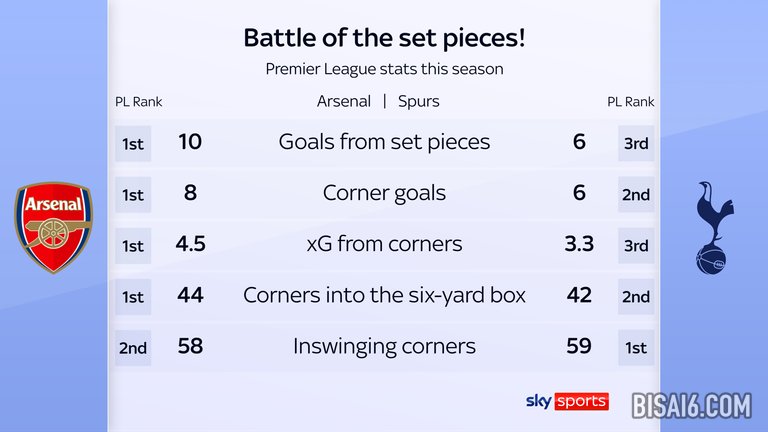 阿森纳和热刺在定位球的乐趣中团结一致。如果真正的奖励是定位球进球,那么周日的比赛将决定冠军归属。