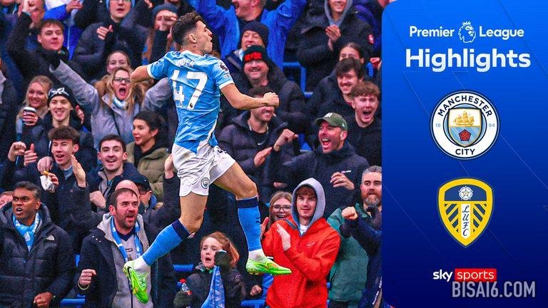 曼城和利兹联之间的英超比赛的精彩集锦。