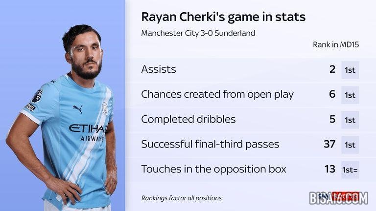 毫无疑问谁是英超周末的统计明星。拉扬·切尔基 (Rayan Cherki) 在助攻榜、空战创造机会榜、带球完成榜、进攻三区成功传球以及对方禁区触球数方面均名列前茅。