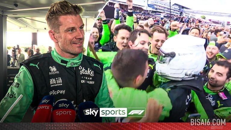 尼科·霍肯伯格在英国大奖赛上首次登上领奖台后,向整个索伯车队致敬