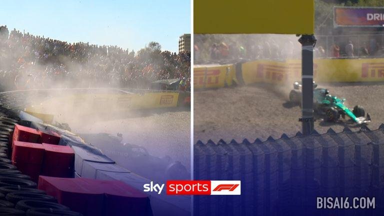兰斯·斯特罗尔 (Lance Stroll) 在赞德沃特 (Zandvoort) 的 Q1 比赛中与墙壁发生严重碰撞后,以某种方式将他的阿斯顿·马丁 (Aston Martin) 开回维修区