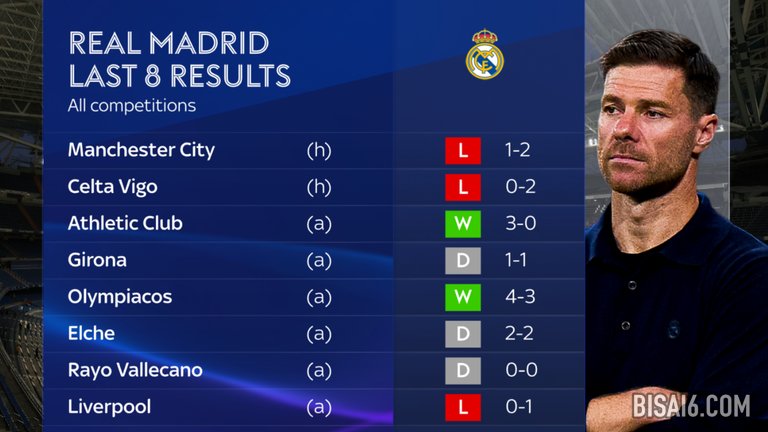 然而,该团队目前正处于令人震惊的下滑之中。输给利物浦后,这八场比赛中三场失利。虽然比分只是1-0,但当阿隆索回到安菲尔德时,皇马已经落后了。