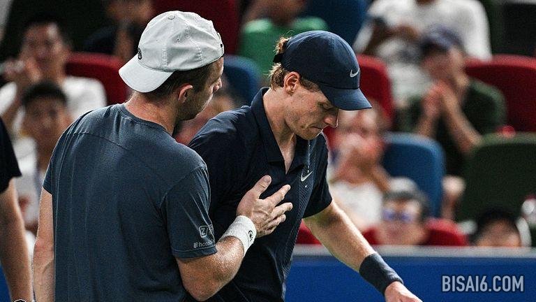 辛纳在上海大师赛第32轮对阵塔隆·格里克斯普尔时因抽筋而被迫退赛