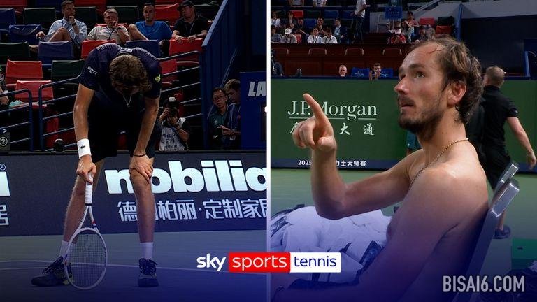 丹尼尔·梅德韦杰夫 (Daniil Medvedev) 在 16 强赛对阵学习者田 (Learner Tien) 的关键抢七赛前抽筋,随后向裁判明确表达了自己的感受