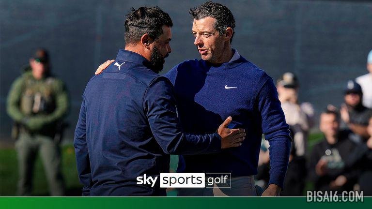 球员锦标赛上罗里·麦克罗伊 (Rory McIlroy) 与 J·J·斯潘 (JJ Spaun) 之间三洞附加赛的精彩片段