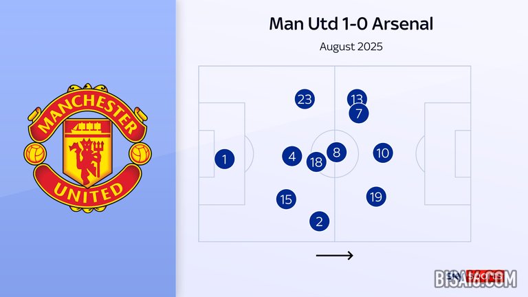 又回到了阿莫林久经考验的阵型;然而,曼联却充满了活力,在阿莫林的另一种不同方式中占据了前脚并高位逼抢。