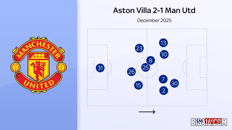 阿斯顿维拉 2-1 曼联 (3-4-2-1) – 2025 年 12 月