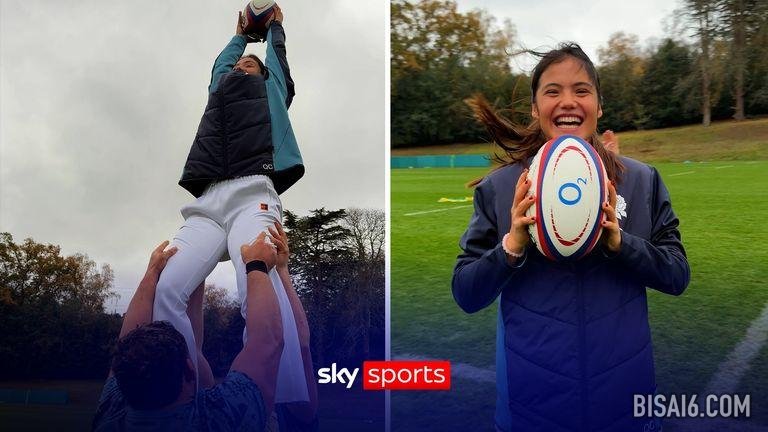 拉杜卡努在与英格兰橄榄球队一起训练时在争边球中展示了她的技巧!