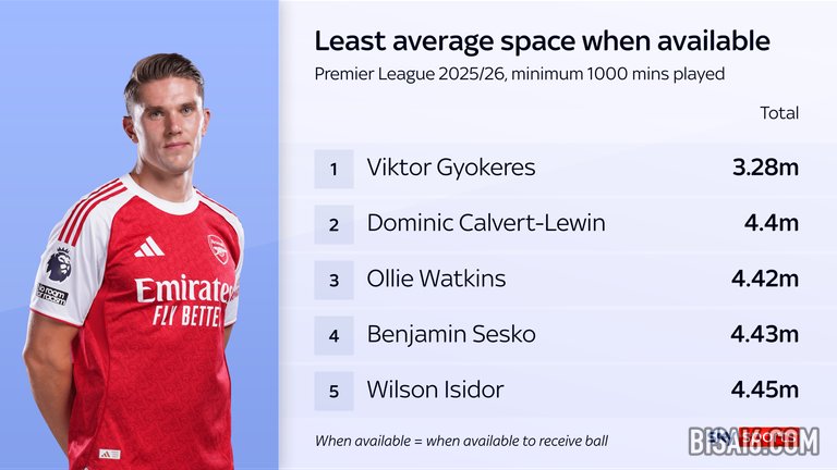 这再次提醒人们,乔克雷斯是英超联赛中被后卫提供空间最少的球员。但这可能表明这位瑞典前锋终于能够应对阿森纳的挑战了。