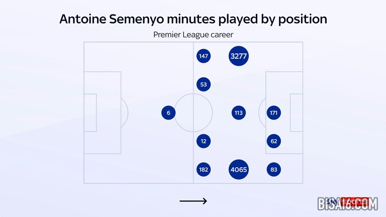 赛季上半段,伯恩茅斯主要在左路使用他,但曼城已经有了杰里米·多库。塞梅尼奥提供了另一种选择,但值得注意的是,他在前俱乐部效力期间在右路踢了更多的时间。