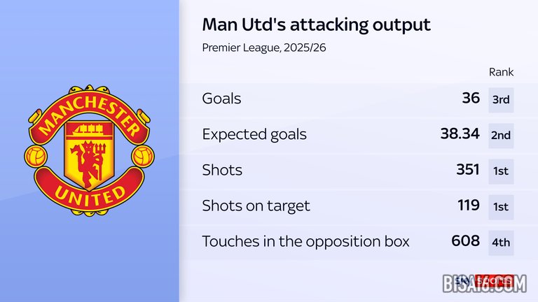 毕竟,曼联在本赛季不稳定的情况下,在进攻上取得了进步。只有曼城和阿森纳的进球数更多,而只有曼城的“预期”进球总数更高。他们在射门和射中目标方面名列前茅。