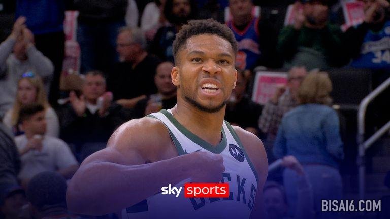 密尔沃基雄鹿队的扬尼斯·阿德托昆博在帮助雄鹿队击败印第安纳步行者队的比赛中打出了令人难以置信的压哨球