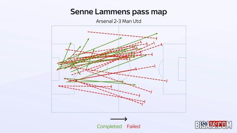 在酋长球场,拉门斯能够多次将传球越过阿森纳的防线顶部,这意味着加布里埃尔和威廉·萨利巴必须同时应对空中对抗和无球跑动,而且通常是在后撤。